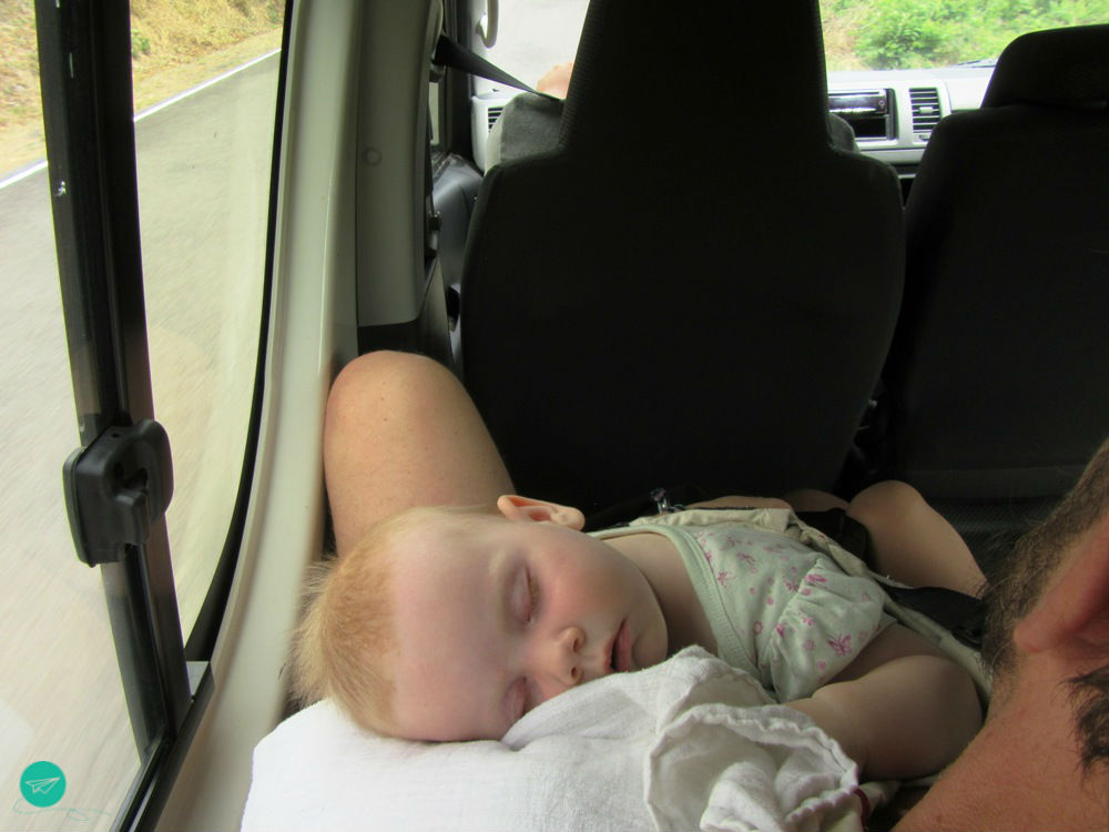 Our driver picked us up at the hostel on time. Towels were provided and lucky us, it turned out to be a private tour. The driver-guide was a former teacher for history and geography, so his knowledge was tremendous. Our first stop was meant to be at the Mini Canyon „Cangilones de Gualaca“. Little J used the time for a little nap and the rest of us enjoyed the landscape and listened to the stories of the guide.