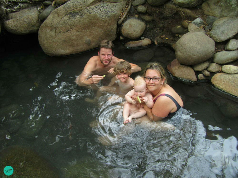 On the property they had 3 natural pools of Hot springs with 3 different temperatures. The first one, located in the river itself, had about 32°. The second one had about 36-38° and the third has about 40°, but we didn’t go in. We had a lot of fun. Enjoying this spectacle of mother nature. Relaxing, splashing, observing the environment we were staying. Big J tried to chase crabs, little J proved her ability to catch little fishes by hand and we took the advantage of doing something healthy.