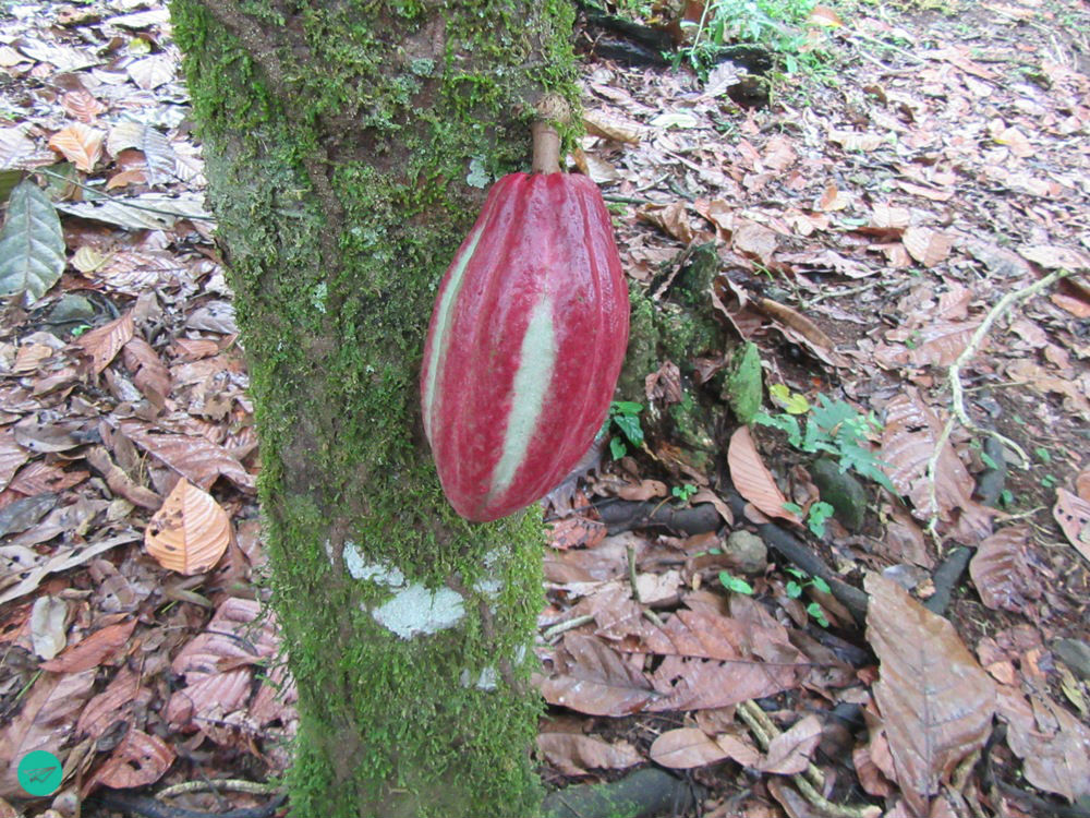 - Flowers and fruits grow at the trunks. There are three main sorts and the fruits have different colours, starting with green though. The harvest is twice a year.