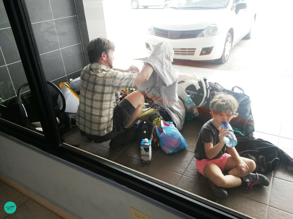 Arriving in David, we needed to go to our rental car station. I asked around, but nobody seemed to know which bus would go there… So we ended up taking a taxi, negotiating the price of course! Happy and full of energy we got there (of course the buses stopped closed by) and were looking forward to get our car. But ups – there was no car? What? No car? I had to take a very deep breath to not yell and scream at the clerk! It was almost lunch time and pretty hot. At least in front of the station was shade. Kids and hubby took a seat and made themselves as comfy as possible.