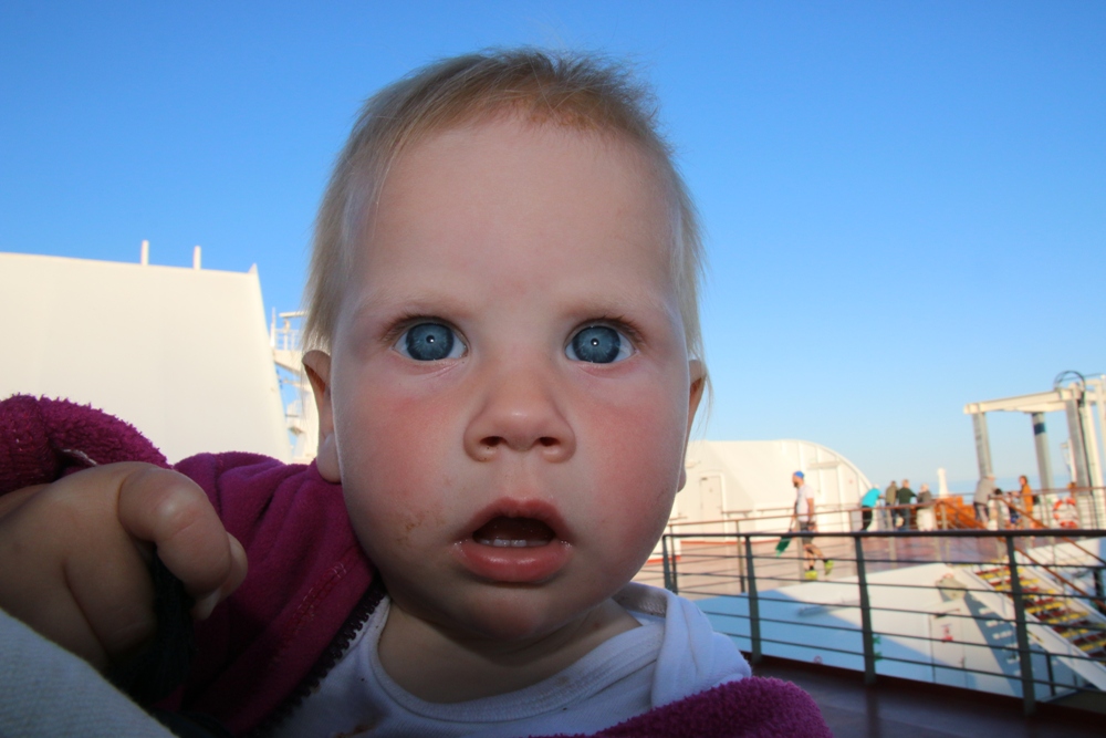 Anyway we caught the ferry at some point and had a fantastic crossing with a stunning sundown. This ferry had it all: kids play area, bar, restaurants, TV area, relaxing seats, a few outdoor areas and the view. We felt like being on a big ocean liner. Here is the recap in pictures (line up, on board, sundown).
